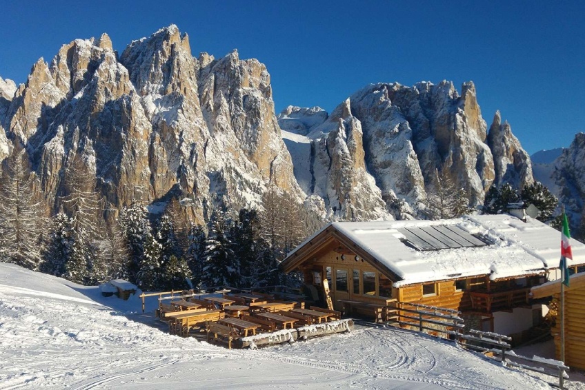 A 2.060 metri, circondata da prati e bosco, sorge questa caratteristica baita a gestione familiare. La soleggiata terrazza vi permetterà di godervi una vista eccezionale su tutte le cime del Catinaccio, così vicine da poterle quasi sfiorare. Lo chalet, in legno e sasso, sovrasta l’altopiano del Ciampedìe, uno dei più bei punti panoramici della Val di Fassa: in inverno è al centro delle piste da sci, mentre in estate lo si raggiunge in seggiovia o a piedi. La salita è ripagata dallo spettacolo della natura e da un’area dove i bimbi possono giocare all’aperto, immedesimandosi in Heidi e Peter.